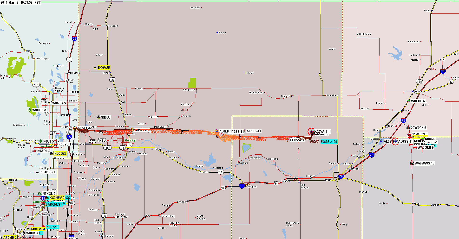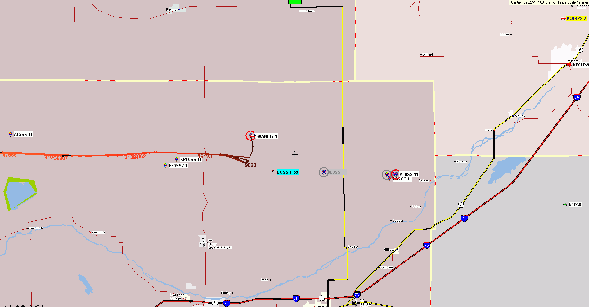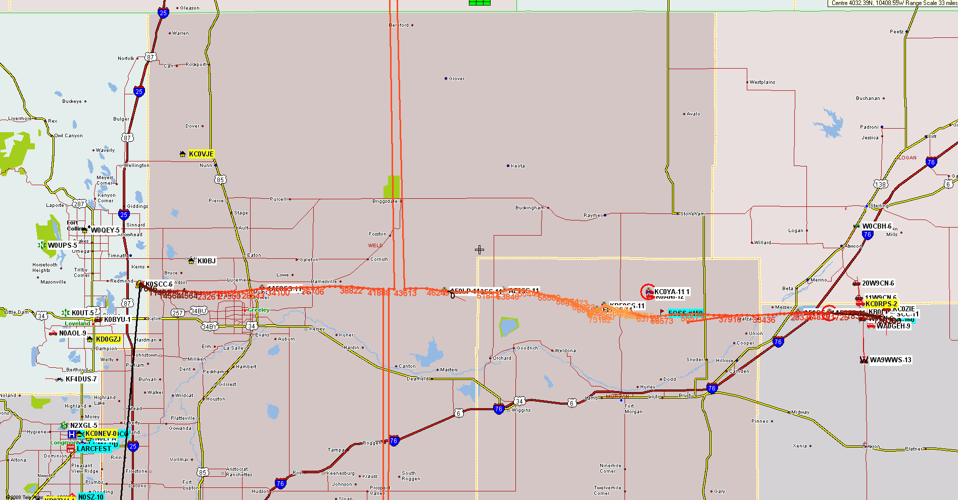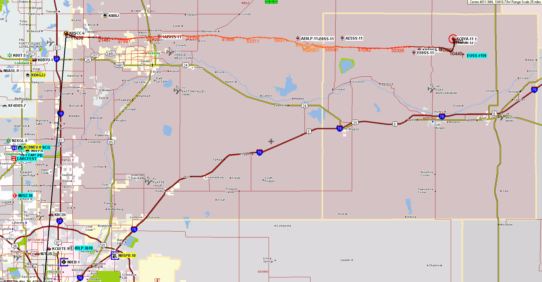 The tracks were further confused by the balloon trackers apparently being powered up (for a test??) on the south side of the Denver metro area, before being taken to the launch site. Or were beacons sent at the launch site before the GPS receivers achieved lock??