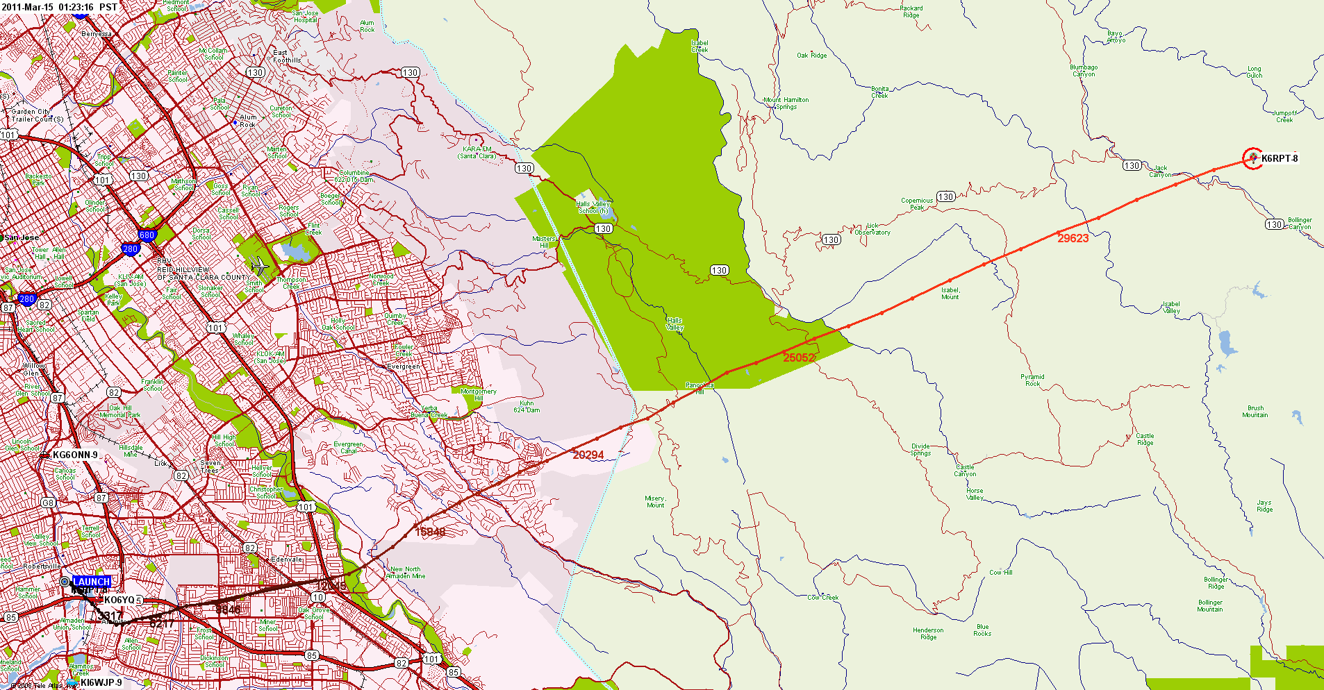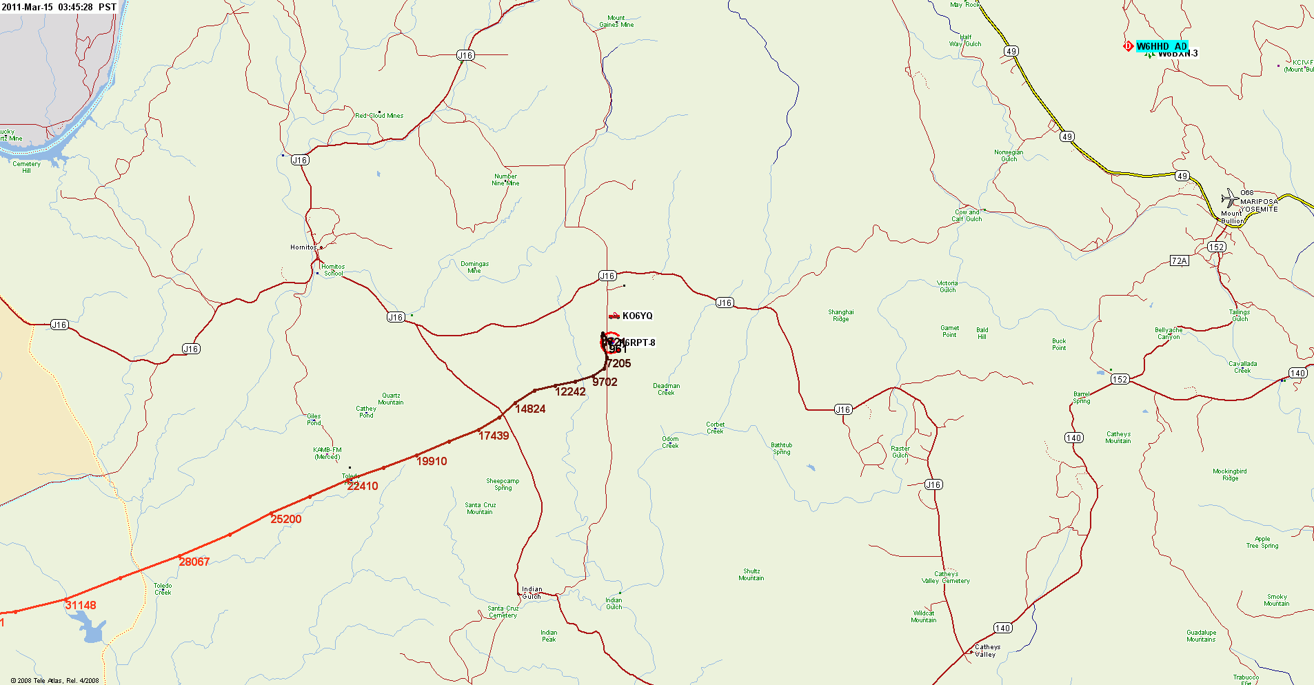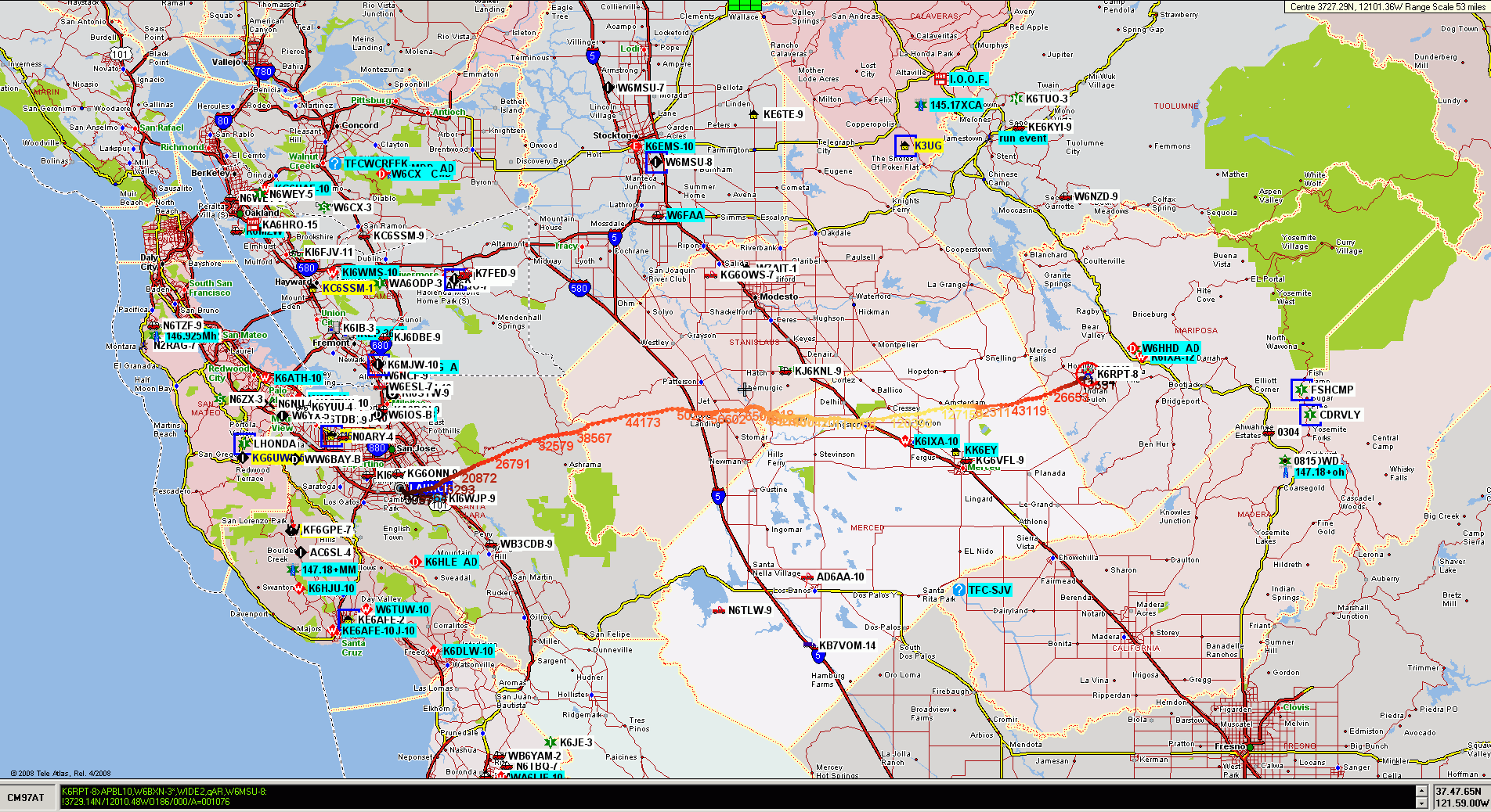 Note large amount of APRS activity in greater Northern California