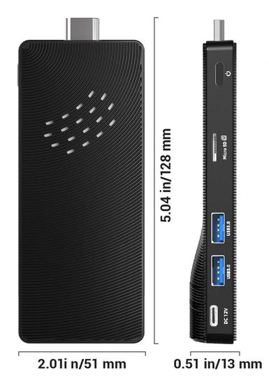 The stick PC include a 4-core 1.5 Ghz 64-bit Celeron