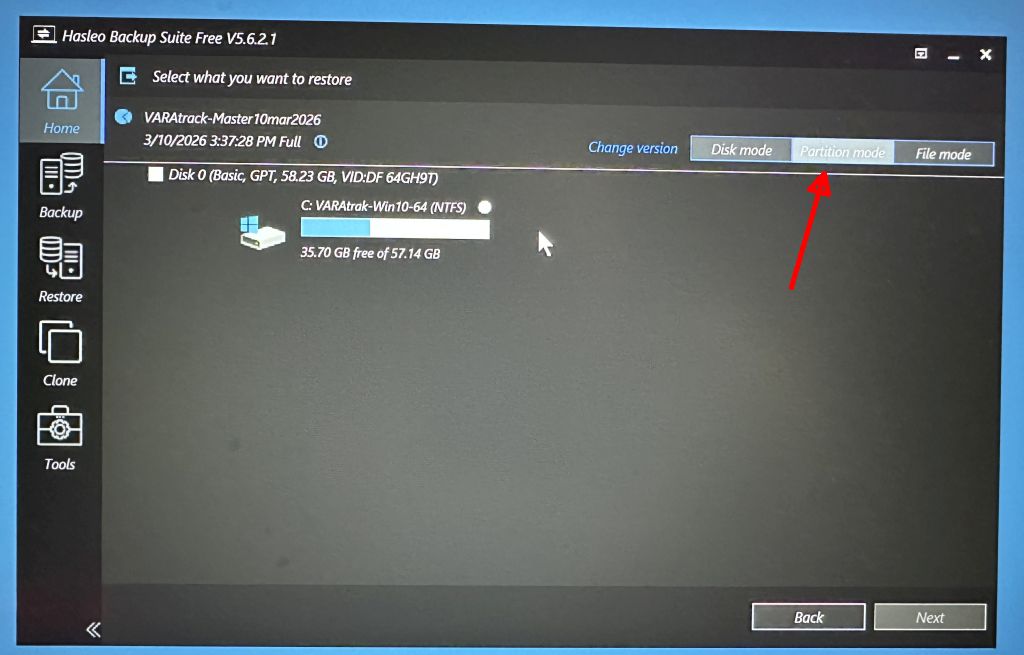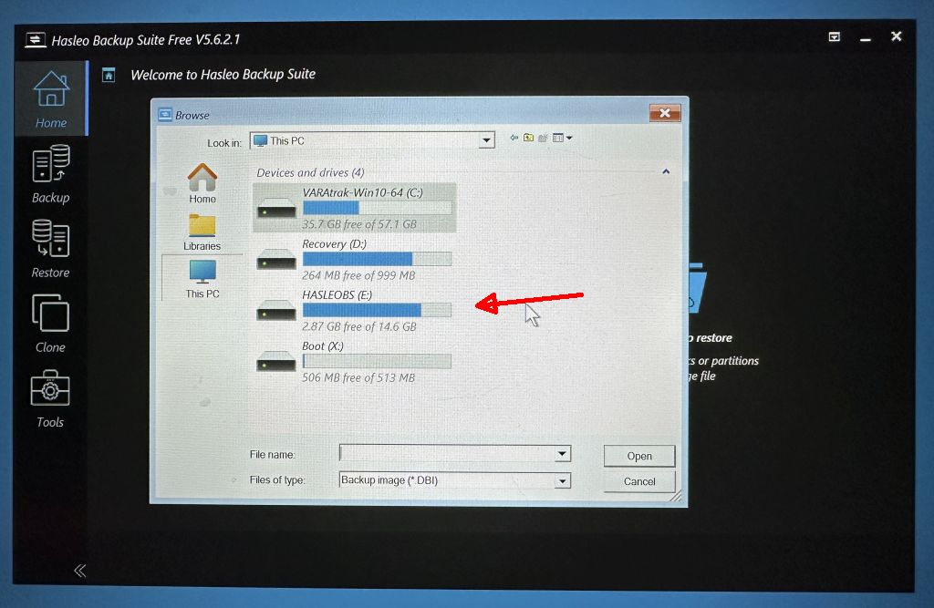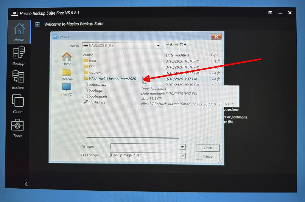 When you are finished, you will have a bootable flash drive that contains both the image of the VARAtrak setup, and a copy of the freeware Hasleo Backup Suite backup/restore tools.