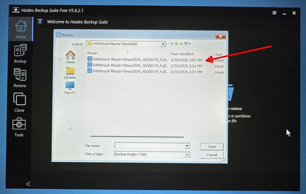 containing the backup. Select the "VARAtrack-Master-xxxx" folder and click