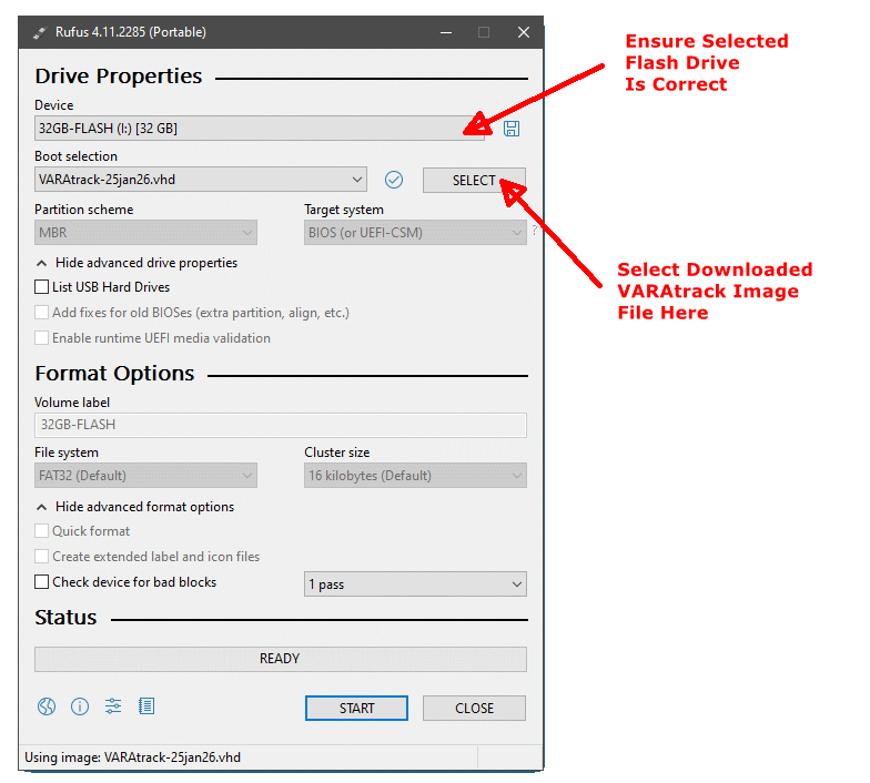 setup the factory-loaded Windows 11 on the stick. Loading the VARAtrack image will wipe out and override anything currently on the