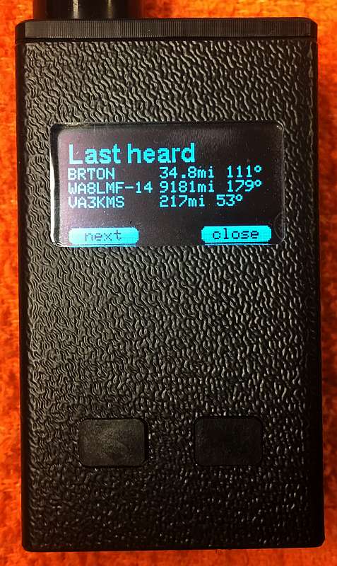 The PicoAPRS display showing recently-heard stations.
