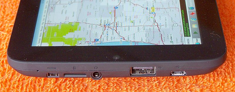 You could then use the full-size USB port on the tablet for a $30 Globalsat BU-353 mini-hockeypuck GPS receiver. I have tested this combo and it works very well with MapPoint, Street Atlas or Precision Mapping as a substitute for a Garmin car navigator (though the Garmin's user interface is far more optimized for use on a small screen), and as a fully-functional APRS tracker/mapping/messaging terminal with UIview or YAAC. The added power drain of the BU-353 reduces the battery run time of the tablet by about 30-45 minutes. Of course, like a Garmin nuvi, you presumably would be using an external 12VDC charger.