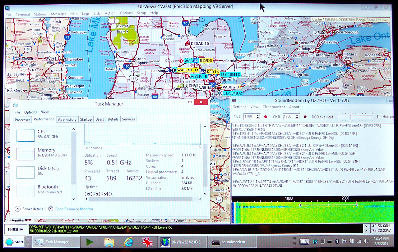 My TW700 is now effortlessly running a complete UIview 2.03 installation including Precision Mapping 9.0, the Precision Mapping 9 server and the UZ7HO Soundmodem soundcard "soft TNC". With the soundcard DSP "soft TNC" running, the Win 8 Task Manager shows less than 25% CPU utilization and only about 2/3rds of the !GB RAM used. (See screen shot below)