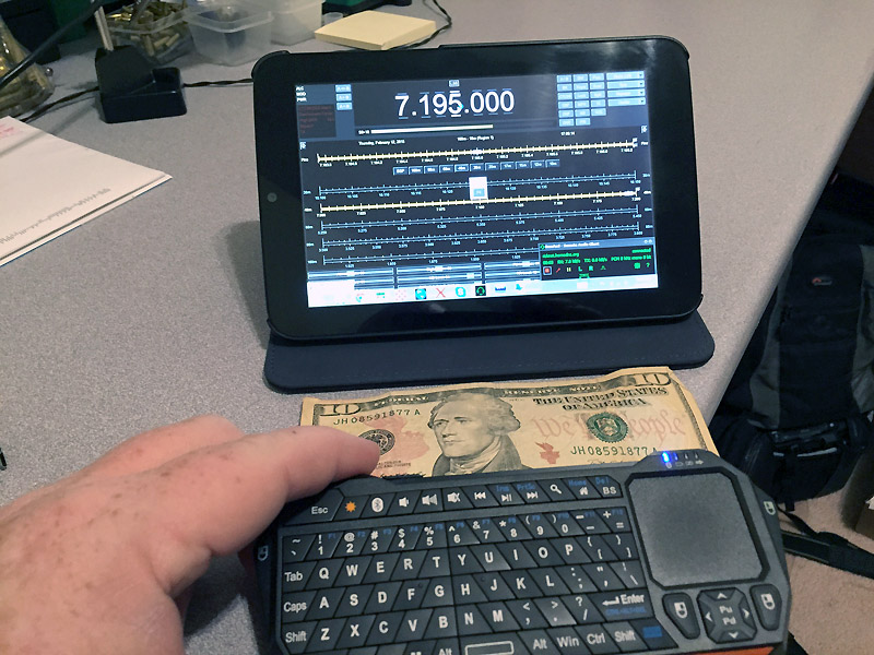 With the tablet's audio in/out cabled directly to a Yaesu FT-818's 6-pin mini-DIN "data port", you would have the ultimate compact lightweight in-the-field HF PSK31/MFSK16/SSTV setup as well as two-meter packet/APRS capability. [The FT-817/818/857/897 have a built-in "data VOX" function that eliminate the need for any soundcard interface PTT keying scheme - you only need the TX and RX audio connections to the mini-DIN port. The transmitter will key automatically when audio from the computer is sensed at the TX pin of the mini-DIN "data port". The "data VOX" function is completely separate from the normal voice VOX function, and is enabled by a separate menu entry.]